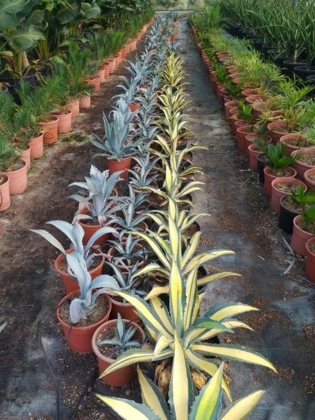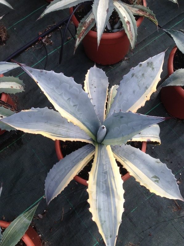 Disponemos de algunas mutaciones variegadas en agaves resistentes al frío. Se comercializan en tamaños grandes de 4-5 años de edad. Seleccionados en nuestra producción por su buen comportamiento en climas fríos y su belleza, no expresamente por su rareza.