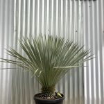 Yucca rostrata con tronco limpio de 15-20 cm y hojas azuladas en forma de abanico. Altura: 80 cm. Contenedor: 35 cm Ø, 25L. Ideal para jardines xerófitos y diseño minimalista. Muy resistente al frío (-20°C).